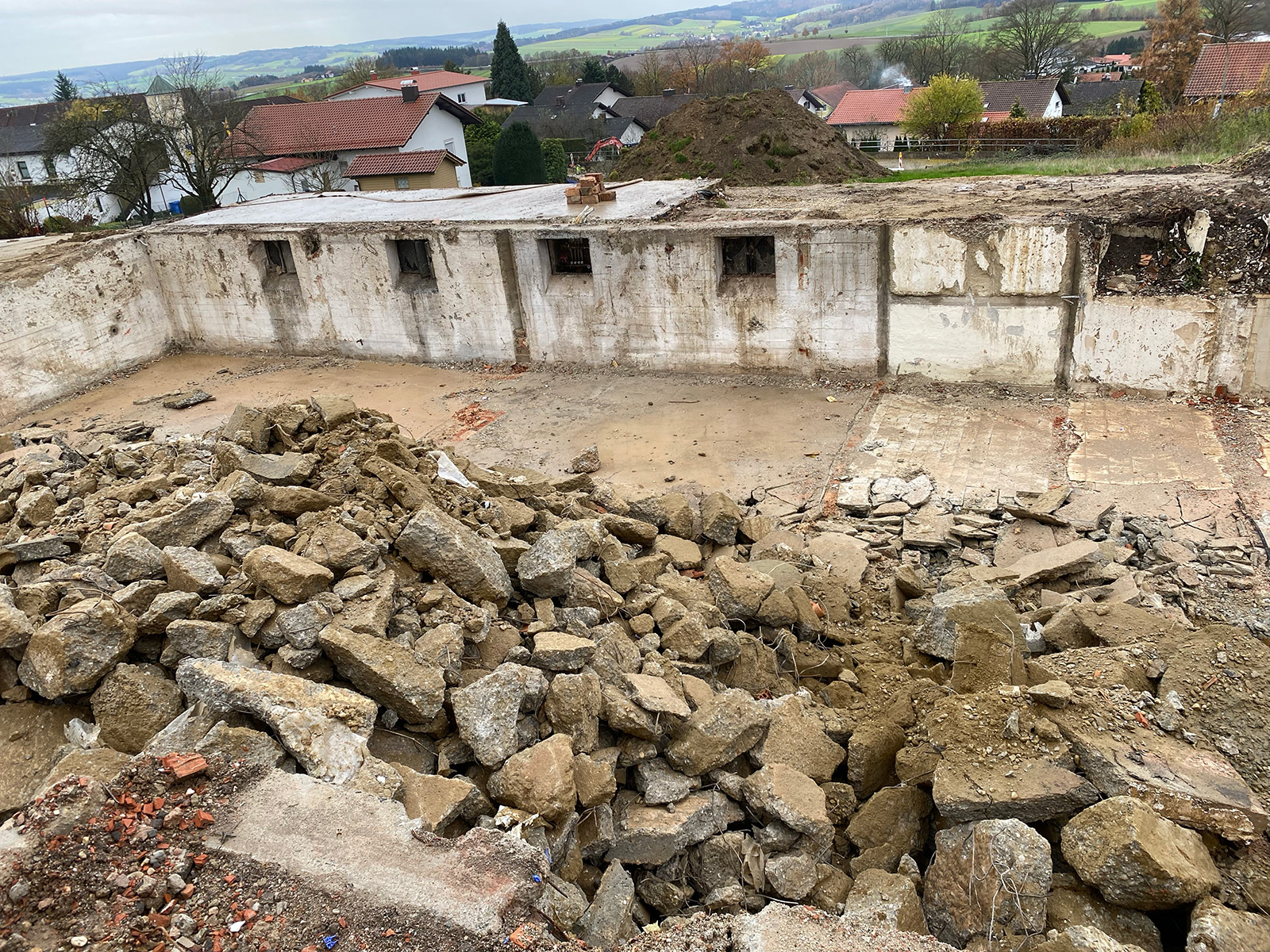 Beim Neubau des ambulanten Pflegezentrums „Rottaler Hof“ in Bad Griesbach im Jahr 2022 führten wir umfassende Abbruch- und Erdarbeiten durch. Der Totalabbruch umfasste rund 4.000 m³ umbauten Raum. Im Anschluss übernahmen wir die Erdarbeiten inklusive fachgerechter Entsorgung mit einem Volumen von etwa 4.100 m³.